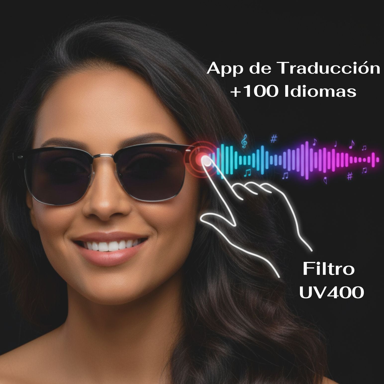 Eleva tu día con gafas que hacen más: audio Bluetooth, traducción con app asistida en tiempo real (vía app), llamadas manos libres y protección UV400. Todo en un marco ligero y resistente pensado para uso diario.