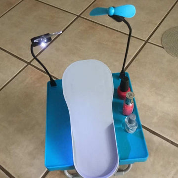 Di adiós a los malabares y al dolor de espalda durante tu pedicure, iluminación, comodidad y precisión… todo en una sola mesa.