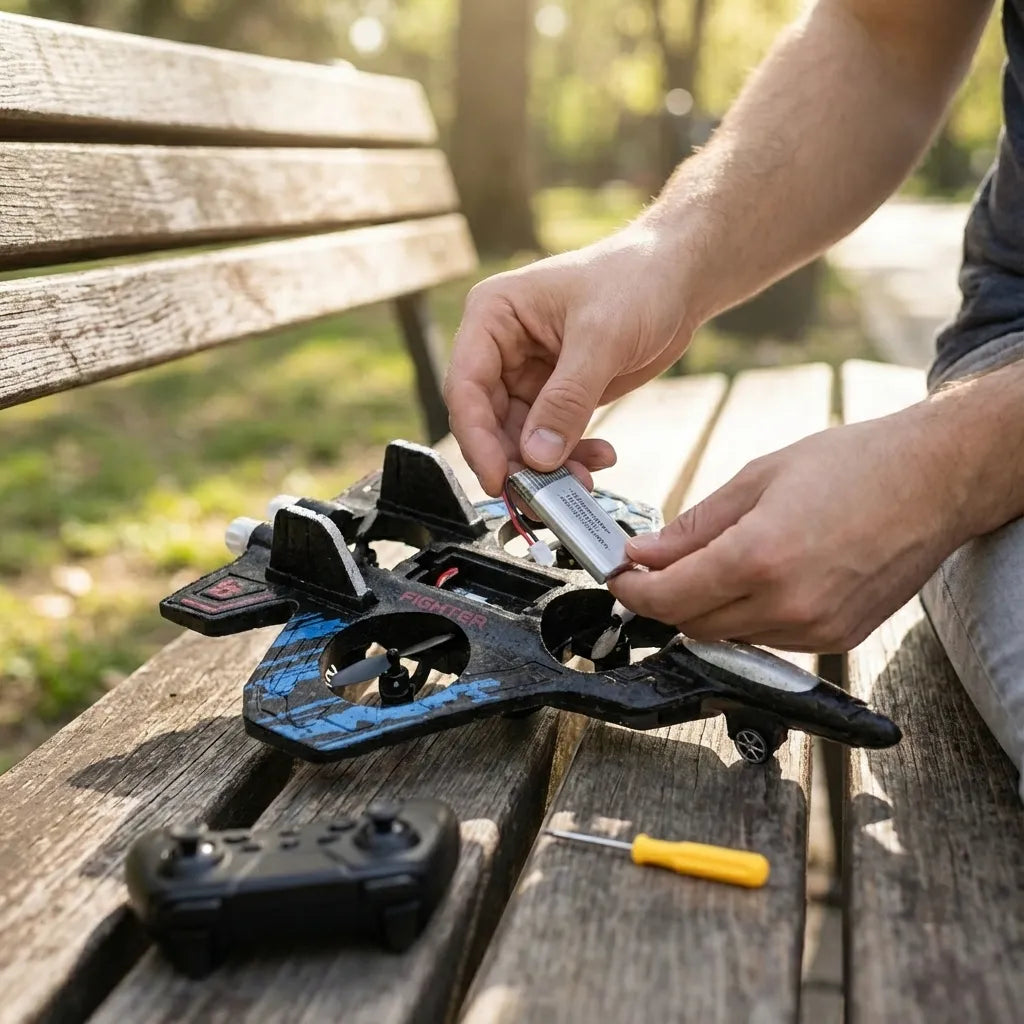 Por eso ofrecemos la opción con dos baterías. Mientras una se carga, la otra está en el aire. Así la diversión nunca para.