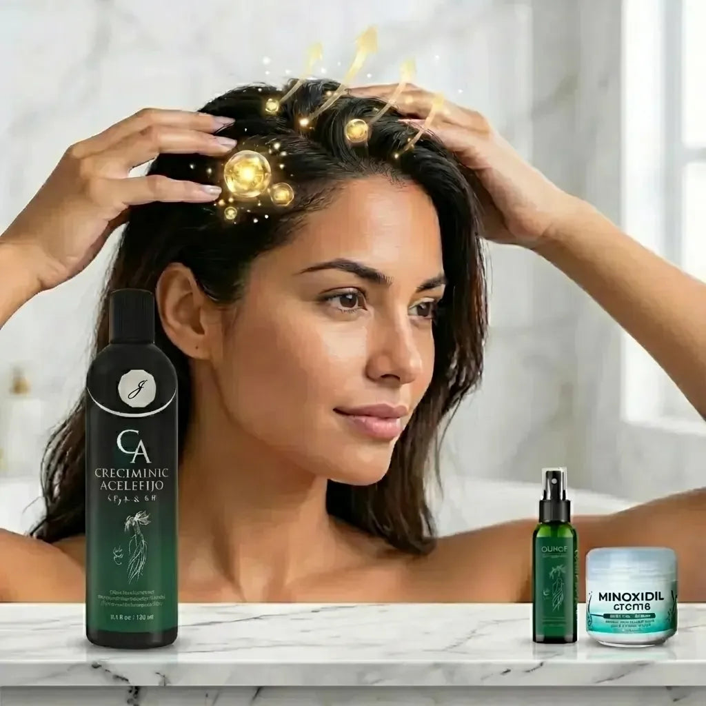 Combate la caída y calvicie y recupera tu cabello con nuestro combo de crecimiento acelerado.
