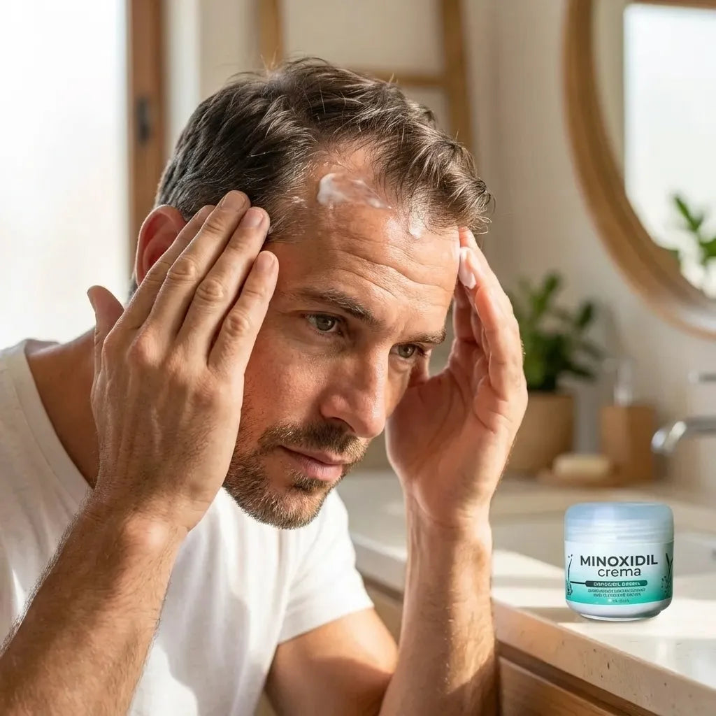 Masajea la Crema Minoxidil en las zonas críticas que más te preocupan